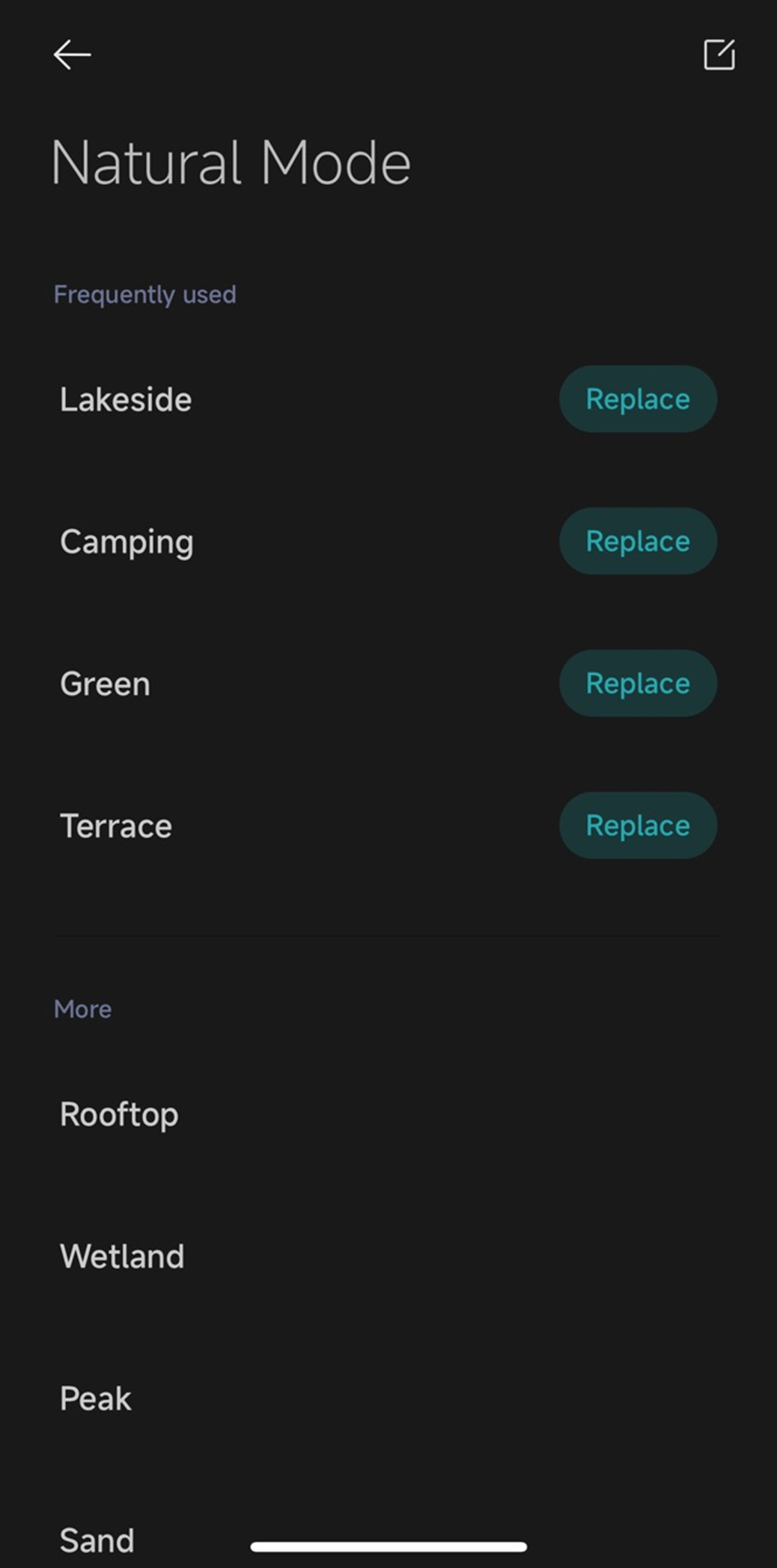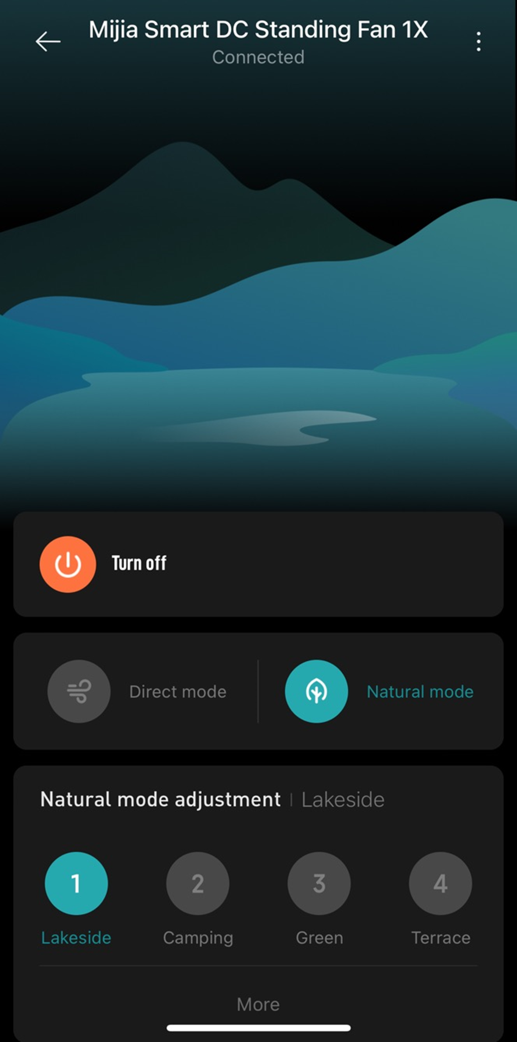 Natural mode를 선택하면 아래 사진과 같이 자연풍의 종류를 선택할 수 있어요.