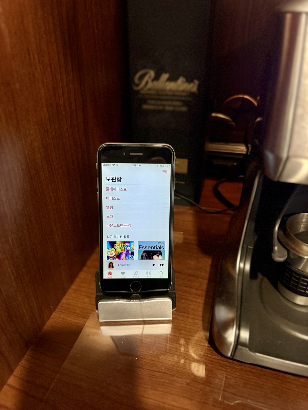 놀고 있는 아이폰 6은 다른 기능 없이 오직 음악 재생용으로만 사용하면 오래된 기기이지만 성능은 충분해요.