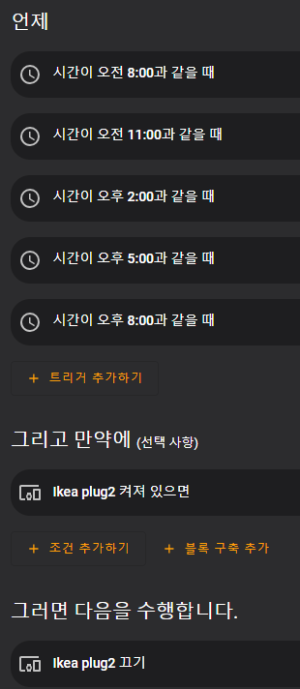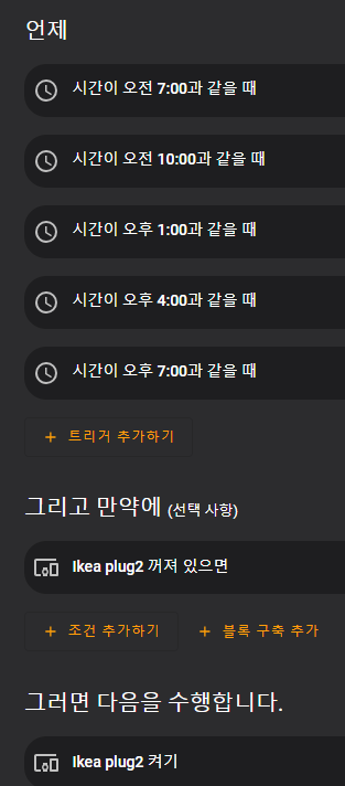 3. Home Assistant 활용: 기존에 구축해 둔 Home Assistant를 활용해, 3시간마다 1시간씩 선풍기가 자동으로 작동하도록 자동화 설정을 완료했어요.