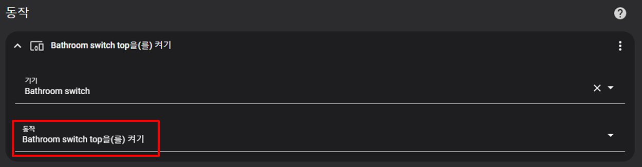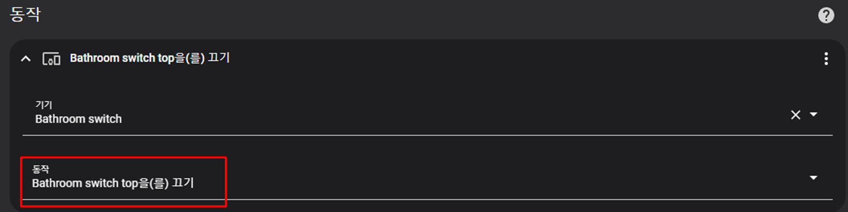 트리거(언제 실행할지) : 화장실 전등스위치 선택 / 이전 : on, 이후 : off