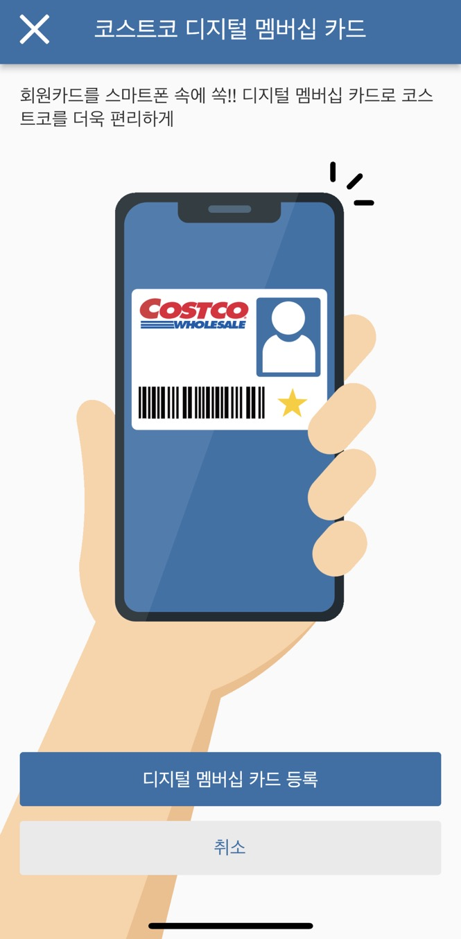 코스트코 매장 회원 데스크에 가서 디지털 멤버십 신청하러 왔다고 하면 기존 사용하던 플라스틱 카드를 반납하고 디지털 멤버십 카드로 바로 전환해 준다.