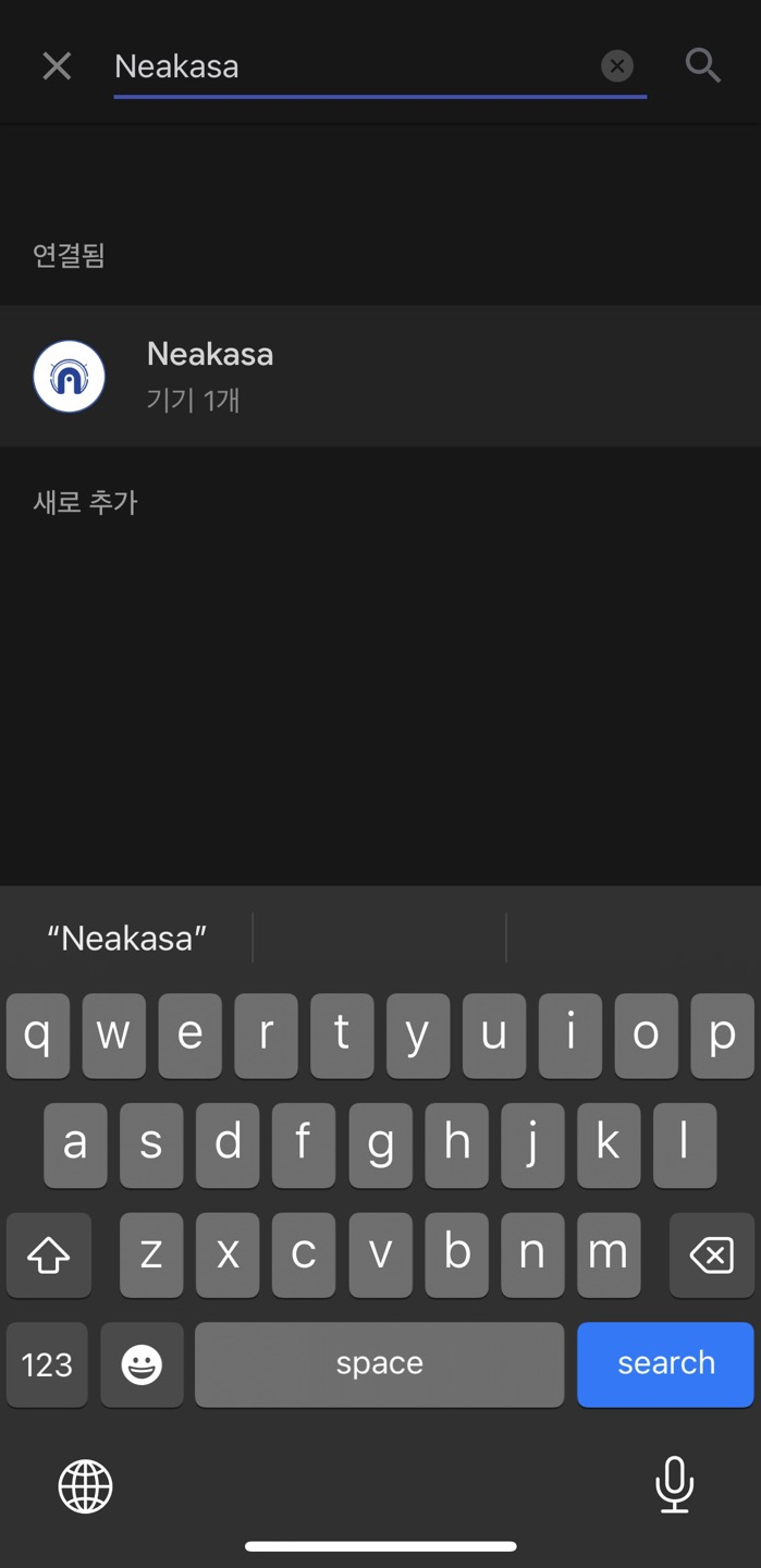 구글홈 앱 왼쪽 상단 "+" 버튼을 누른 후 기기설정 -> 구글호환가능기기 -> Neakasa 검색 -> Neabot 등록 계정으로 로그인을 하면 구글홈에 연동이 완료된다.