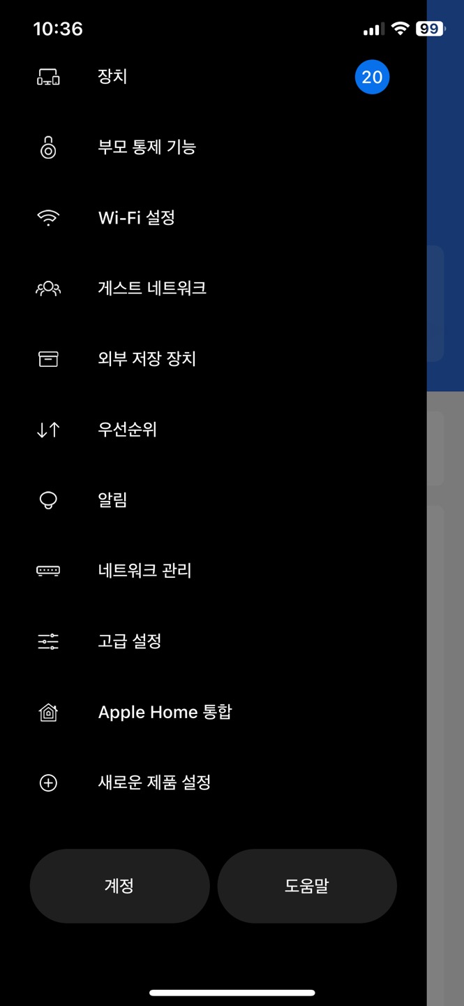 매뉴에서는 다양한 편의 기능을 확인하고 관리 할 수 있다.최대 50개의 게스트 네트워크를 구성할 수 있다.