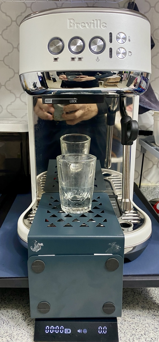 브레빌 밤비노 플러스 커피머신을 아주 잘 사용 중이다. 몇 달 전에 구매한 타임모어 나노 저울을 사용해서 분쇄된 원두 대비 추출량을 1:2로 추출하는데 밤비노 플러스의 물받이에 저울을 올려놓으면 추출되는 동안 커피머신의 진동으로 인해 저울의 값이 많이 흔들리고 처음부터 영점이 안 맞는다.