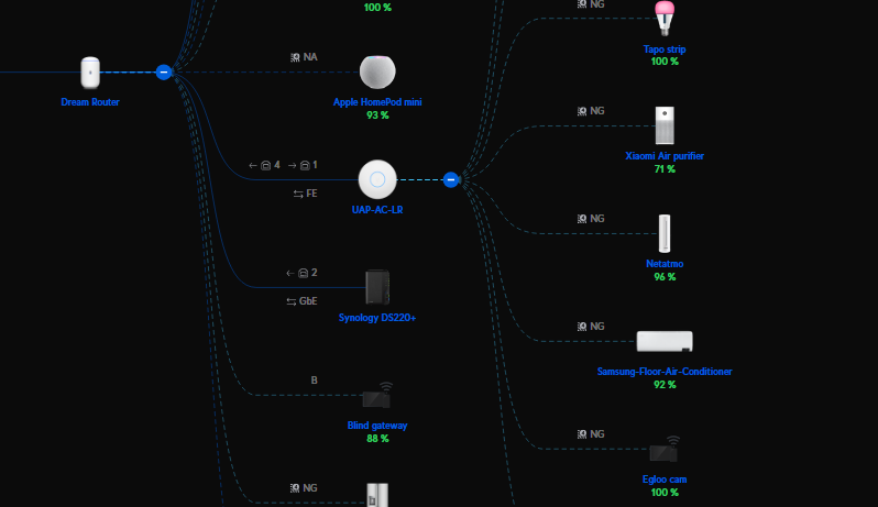 토폴로지를 활용해서 현재 연결되어 있는 유, 무선 기기들도 한눈에 볼 수 있다.