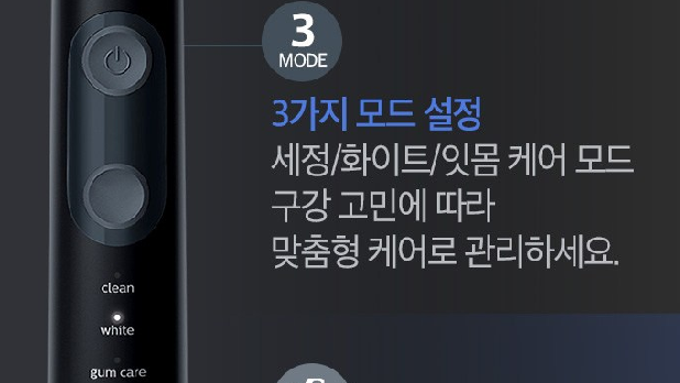 3가지 양치모드가 있는데 사람마다 원하는 세정 방식의 차이가 있을 수 있어 좋은 기능이라고 생각돼요. 내 경우에는 처음에는 세정모드로 사용하다가 화이트 모드로 변경하여 사용 중인데 만족스럽게 사용 중이에요.